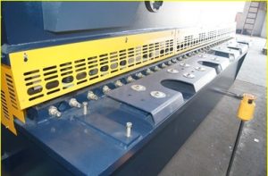 2.Backguage: 0,55KW elektr mexanizmi bilan ishlaydigan vosita setida sozlash. Orqa stopper elektr moslama va qo'lda sozlash moslamalari bilan jihozlangan, shuningdek to'xtash o'lchami va kesish vaqtlarini ko'rsatish uchun raqamli displey qurilmasi mavjud.